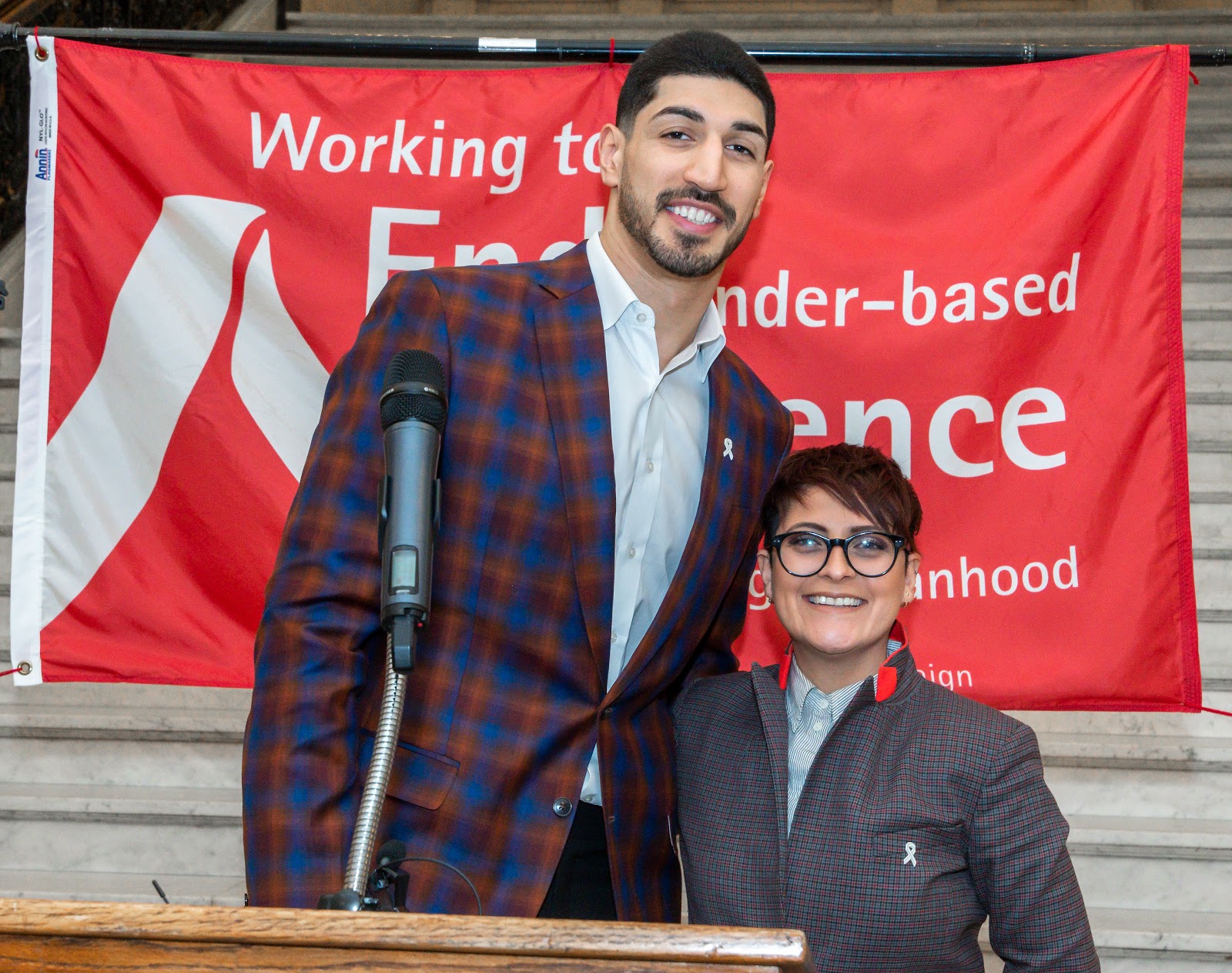 Kanter said, “Violence comes in more forms than physical and I stand with you young men today to pledge to stand up and with women everywhere around the world to not condone violence in any space. … The right thing to do is to spread respect among ourselves and towards women. We don’t have to follow established traditional norms of manhood. Overcoming our insecurity in this respect is half the battle. You will start seeing the positive impact of reimagined manhood“.
