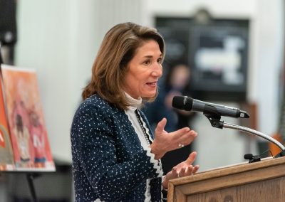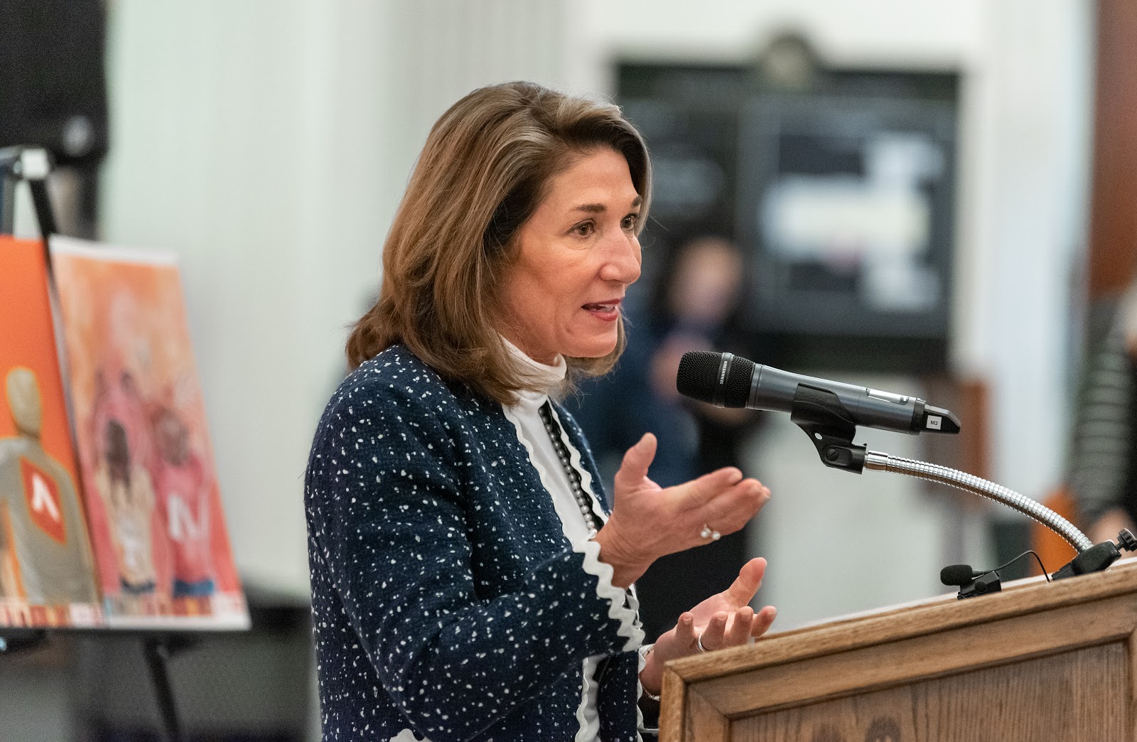 Massachusetts Lt. Governor Karyn Polito spoke about the #RESPECTfully campaign during her remarks at the JDI’s White Ribbon Day kickoff. (Photo:Ilene Perlman Photography.)