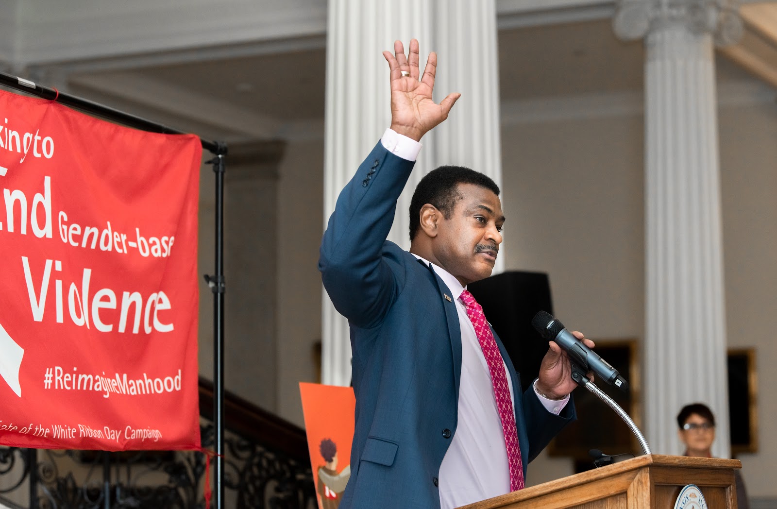 Angelo McClain, Chief Operating Officer of the National Association of Social Workers, invited all men to join him in taking JDI’s White Ribbon Day Pledge to be part of the solution in ending violence against women and gender-based violence. (Photo:Ilene Perlman Photography.)