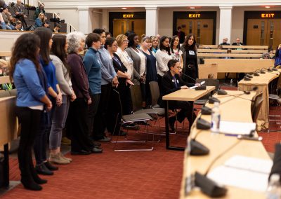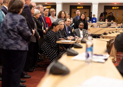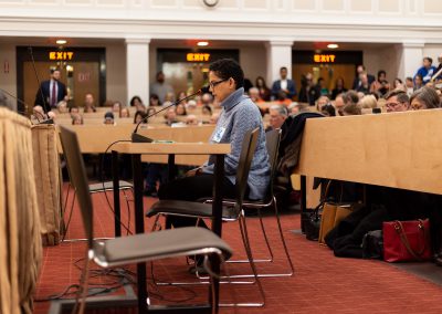 She acknowledged the courage of survivors who were in the room to bear witness and to speak their truths: “Their lived experiences were woven into every panel speaking at the hearing because sexual and domestic violence are that pervasive.” She also highlighted the fears of immigrant survivors to seek help, to get medical care and their increased fear of deportation, retaliation from abusers and separation from their children. She implored the committee members to consider: “How can we, as a state with a strong moral compass, allow this to happen?”